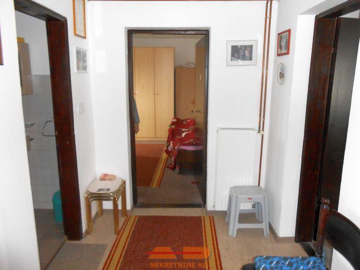 Unutarnje stube vode na kat: hodnik, kupaonica sa wc-om, spavaća soba sa izlazom na balkon, te boravak sa kuhinjom i blagovaonom.
