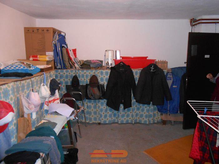 Unutarnje stube vode u podrum, u kojemu je vešeraj, ljetna kuhinja, 2 ostave i izlaz u garažu.