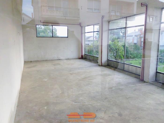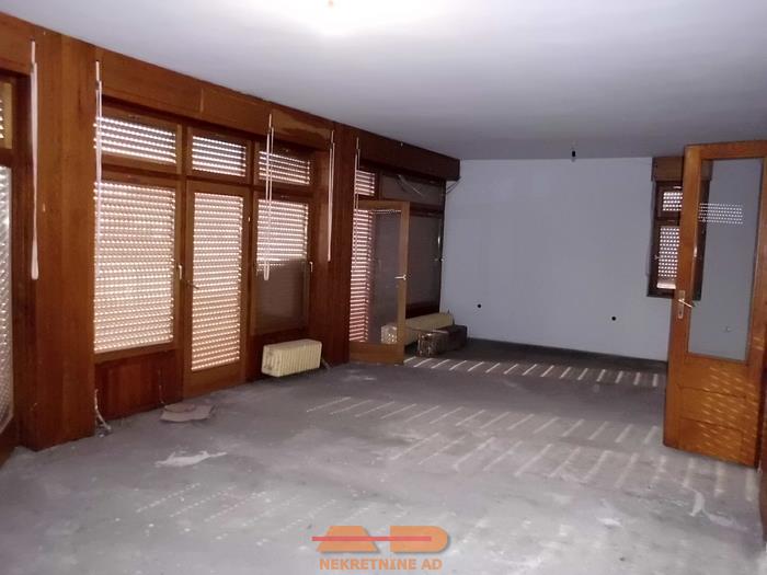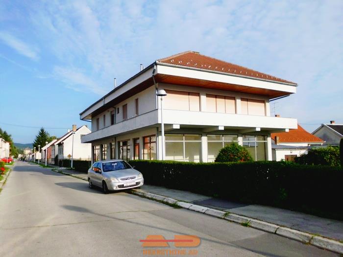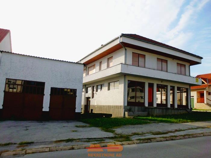 Vrlo interesantna nekretnina na odličnj i mirnoj lokaciji, sa poslovnim prostorima od ukupno 150 m2 + stambenim dijelom od 150 m2 + velikom garažom i simpatičnim dvorištem.