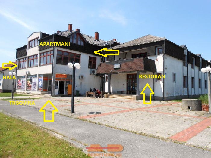 Lijevu stranu objekta čini trgovina + skladište u prizemlju, velika hala na katu, te 20 apartmana u potkrovlju.