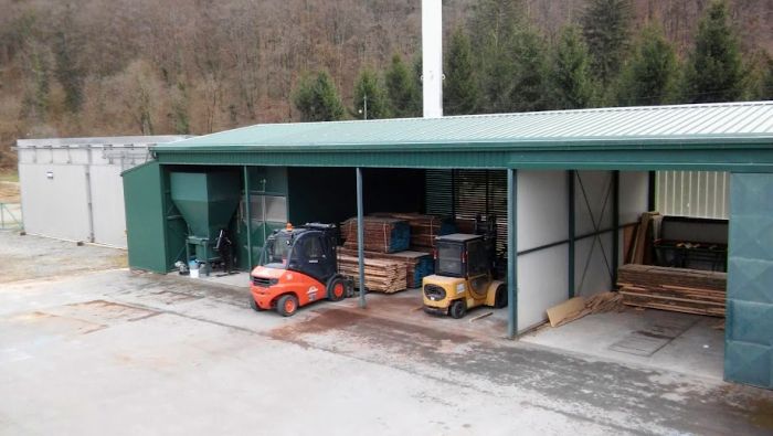 Tu je još kompresorska stanica sa razvodom zraka prema svim strojevima, tank 2000 l sa pumpom za naftu, regali za nedovršenu proizvodnju, silos za piljevinu 60 m3 sa ventilacijom.